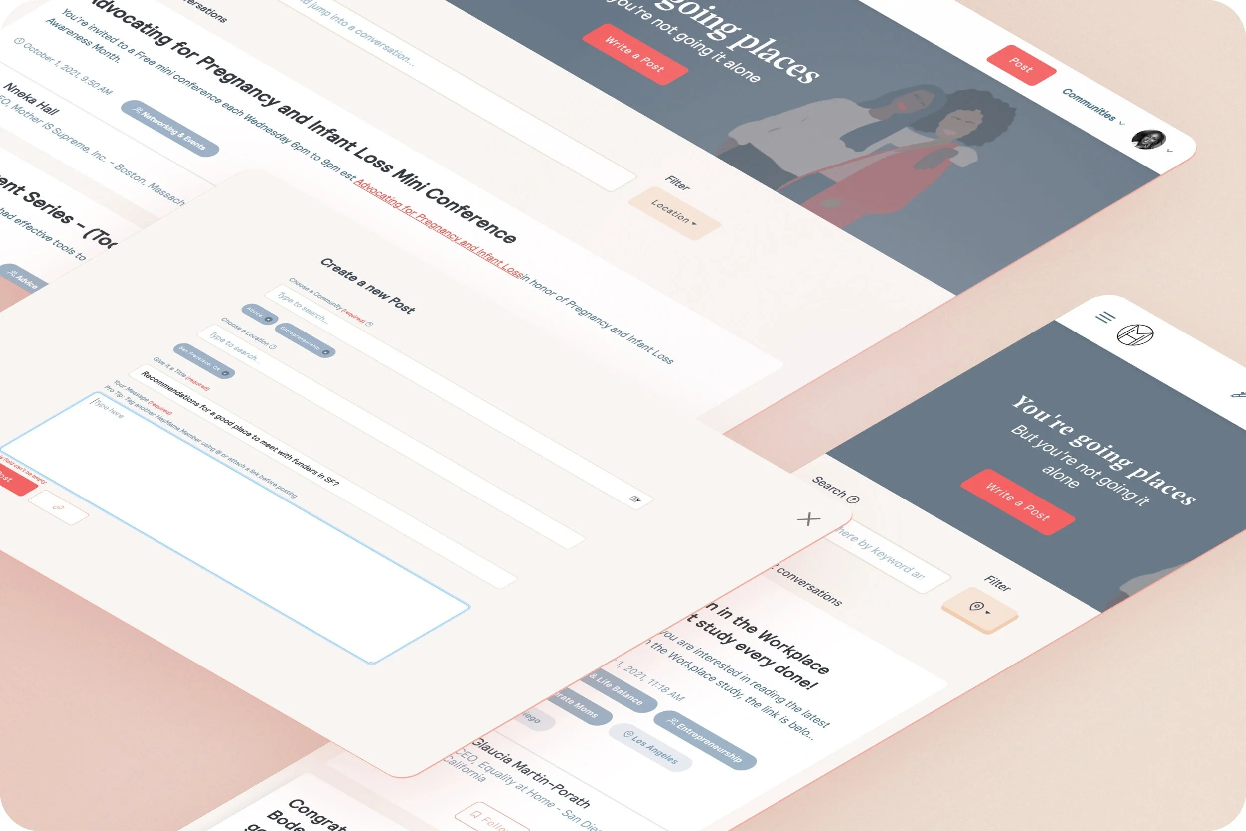 With clean and secure data inputs, we built the first few pieces of the platform: the ability for members to see and update their profile and billing data, and the ability to search and view the profiles of other members. We then built our MLP (minimum lovable product) version of the HeyMama community forum with communities and a custom admin system. As with the application form, these features went through multiple rounds of design and iteration before launch.